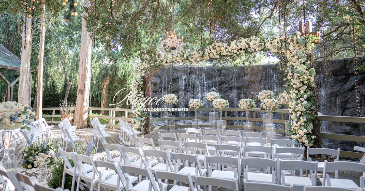 The lovely couple’s wedding is a culmination of a fairytale to reality with their stunning outdoor wedding. They selected the iconic Calamigos Ranch as the setting for their big day. They envision a wedding with a perfect blend of elegance and regal vibes at the Oak Room. Hence, the place is full of beautiful ivory blooms and exquisite spring details.