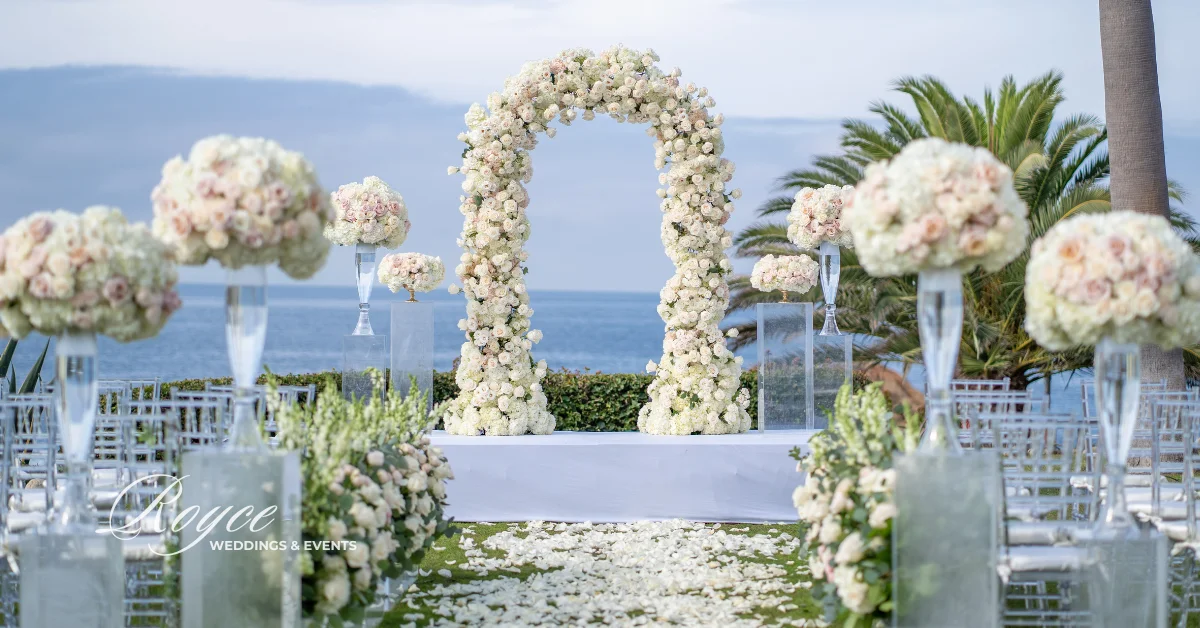 Genuine love and friendship are the foundation of this dazzling Montage Laguna Beachfront wedding overlooking the Pacific sea. At first glance, the venue’s elegance and iconic look fascinate the couple. The sweeping view of the ocean and the perfectly-manicured lawn is superb for both the ceremony and reception. The welcoming site is perfect for any wedding style and shade. But we are swooning over the ivory and soft pastel elegance that was incorporated into this special day. The dashing ceremony arch is definitely the star of the show, especially with the dazzling ocean as the backdrop.