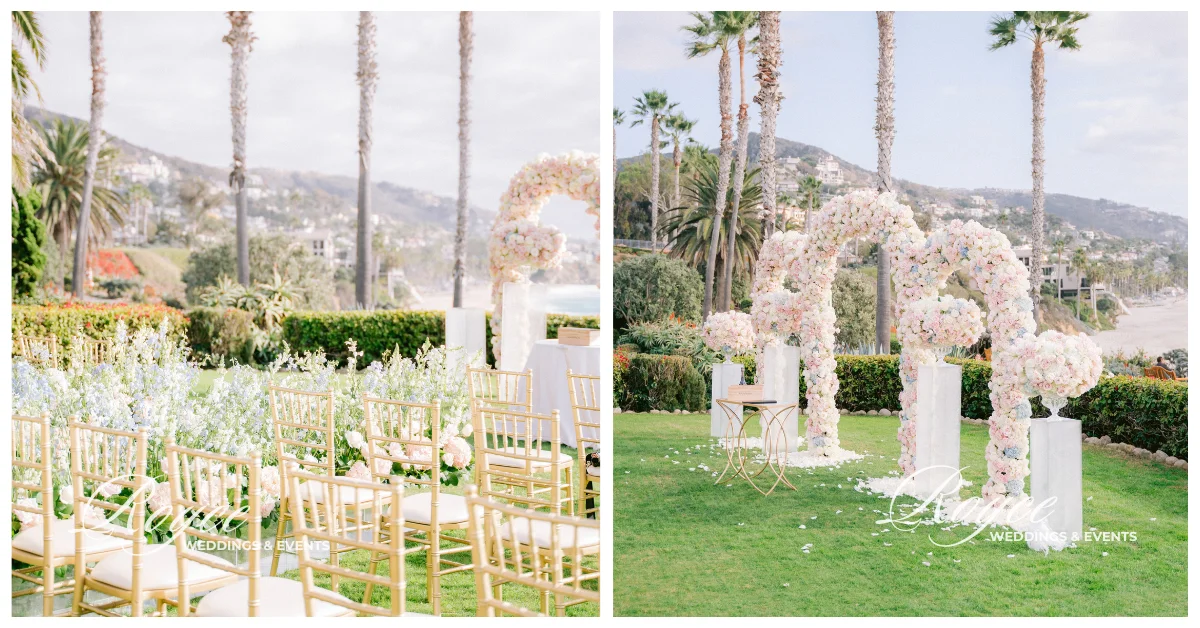 Elegant decorations enable the gorgeous scenery of Montage Laguna Beach to serve as a romantic backdrop for the lovely couple’s wedding. Moreover, every detail of the wedding blended with the dazzling beauty of the beach. The place is oozing with timeless elegance that only a venue like Montage Laguna Beach can offer! The couple tied their knots amidst the panoramic view of the sea as their wedding ceremony backdrop and dreamy floral-filled arches along with tantalizing floral centerpieces, and a petalled aisle in blush and pastel blooms.