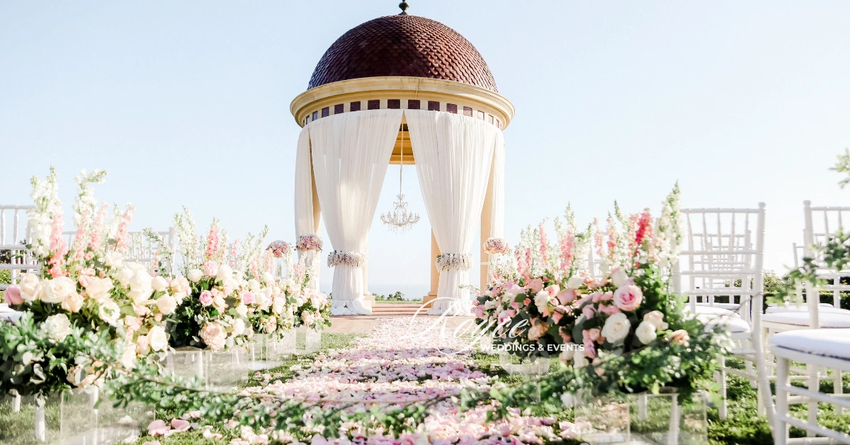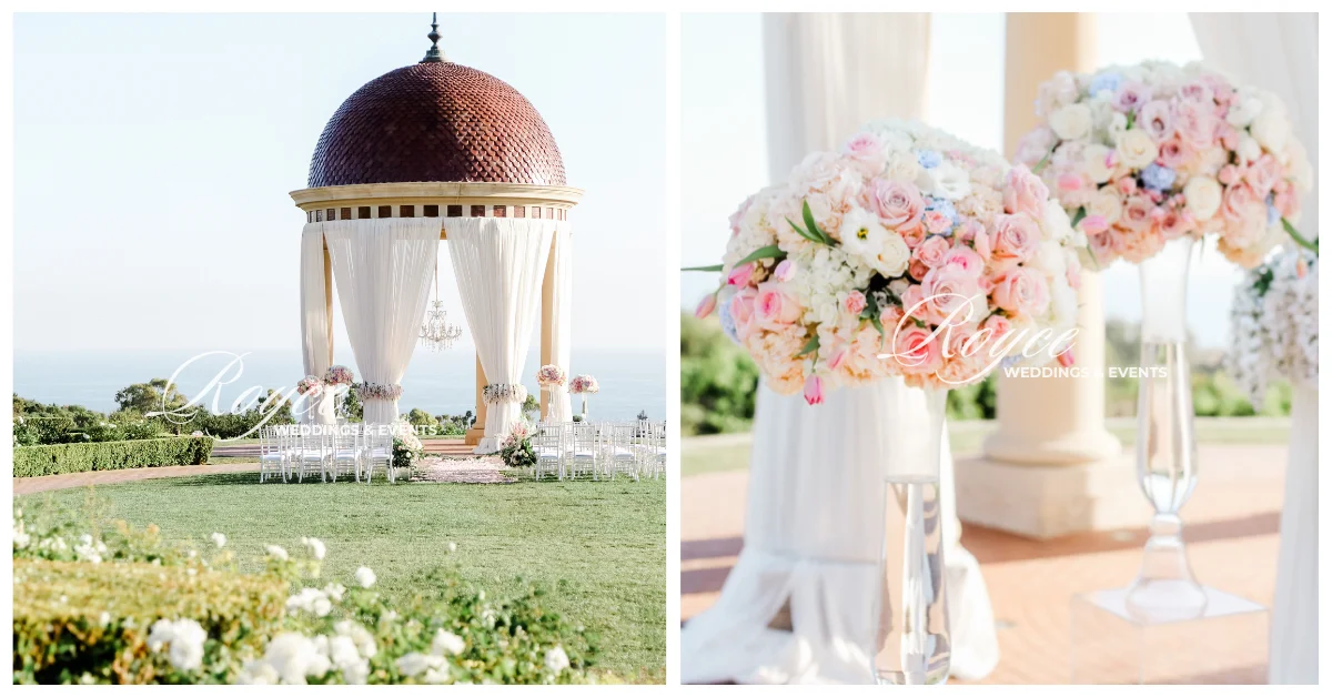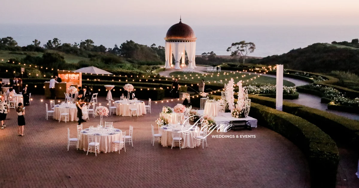 Once upon a time, under the dazzling Southern California sun, love radiated as our lovely couple exchanged their vows in a fairytale-esque way. What makes it more special is the presence of their family and friends and the natural light shining upon them. Taking advantage of the venue’s stunning views, their dream oceanfront wedding came to life at the iconic Pelican Hill Resort. Their wedding ceremony is glowing with love and elegance. Besides, the golden sun rays make the whole place a tad more romantic. It’s like stepping into a fairytale wonderland where charming details perfectly combine with dreamy aesthetics. Hence, creating a timeless and alluring Pelican Hill sunset wedding ceremony.