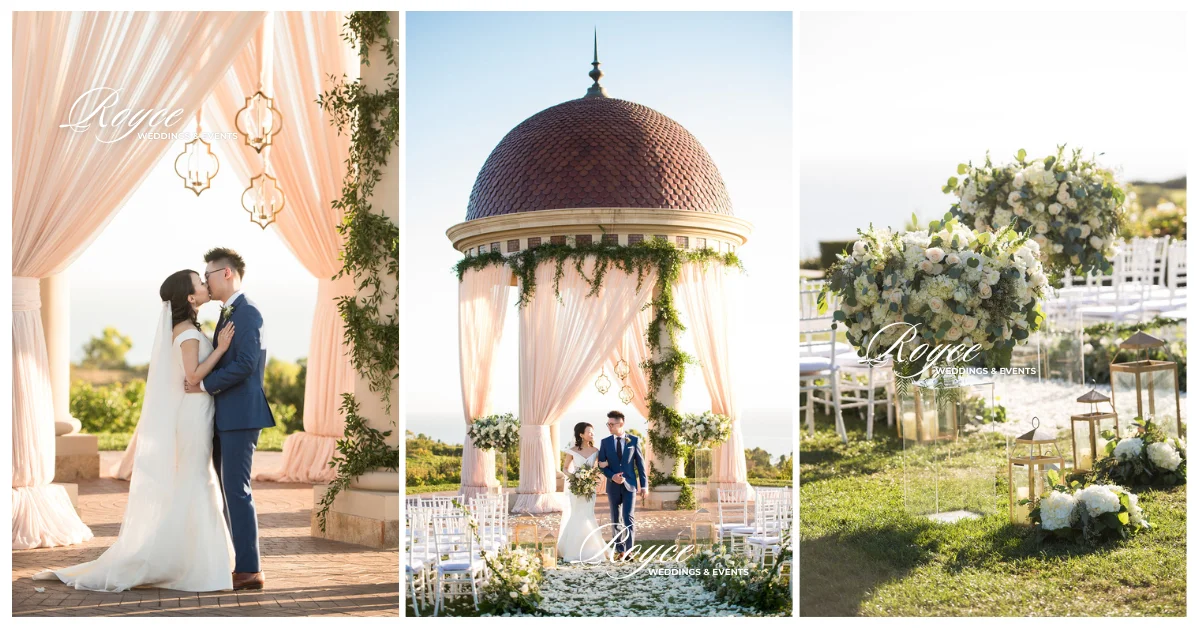 Erica & Allen are college sweethearts. They have their opulent Pelican Hill Resort Wedding on a stunning California summer day. And then, selecting a classic color palette of greenery and ivory, the couple collaborates with our team. Surely, it is to bring their vision of an elegant garden wedding that highlights the natural beauty of Pelican Hill to life. Erica & Allen, together with our team and professional vendors create a fine art wedding amidst Californian summertime at Pelican Hills. For instance, we perfectly create an oasis of summertime charm, luxe romance, and total elegance. Furthermore, the rotunda at the ceremony lawn accentuates a lovely mix of greenery and tall arrangements. Above all, the bride is glowing in her classic & sophisticated bridal gown.