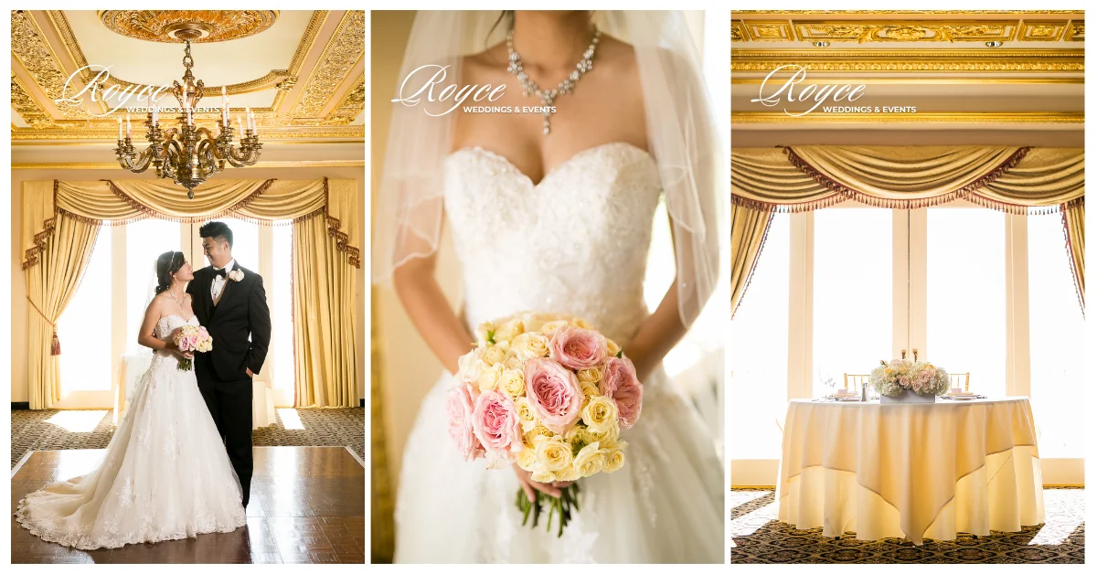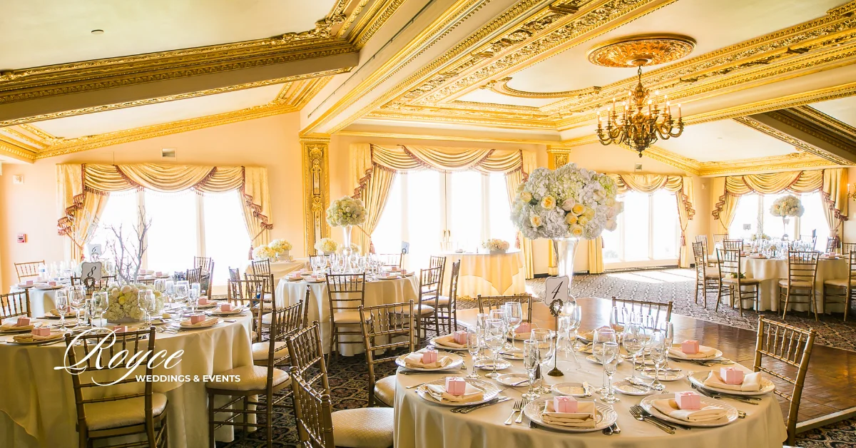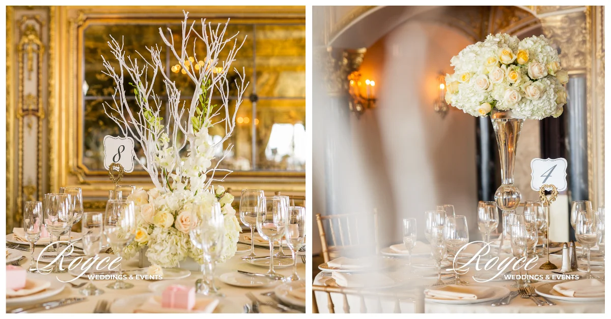 We are swooning over this elegant & intimate oceanfront wedding in a pastel palette. This Trump National Golf Club Seaside Wedding is overflowing with tradition and timeless elegance. The wedding is at her family home. And then, they enlist the help of Royce Weddings Planners and Designers to bring their vision to life. Furthermore, with a stunning neutral palette of whites, cream, and ivory. Indeed, the reception was utterly magical, incorporating elegant gold interior details of the Trump National Golf Club. And also, dreamy centerpieces of varying heights.